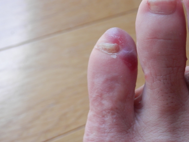 こっちは、どこに出しても恥ずかしくないほど、立派な血豆ができましたw
