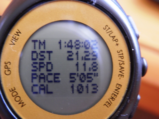 さらに、21度の気温の中、ハーフということもあって、給水は無しというのも体力を奪い、15km以降はキロ5分台のラン。
