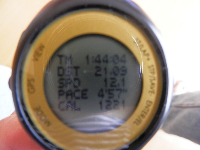 21kmちょっとを走って、1時間44分台で終了。