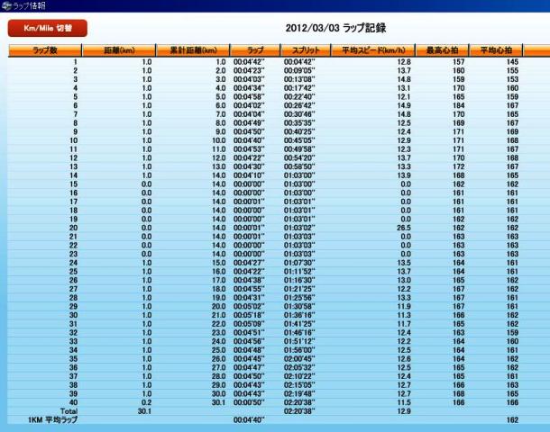 とはいえ、ここまで来て、中途半端な距離走で終えるのもくやしいので、痛みをこらえて30Kmなんとか完走!