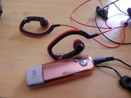 ヘッドホンは、「スポーツモデル」にチェンジ。走りながら使っても、耳からヘッドホンが外れない仕様です。