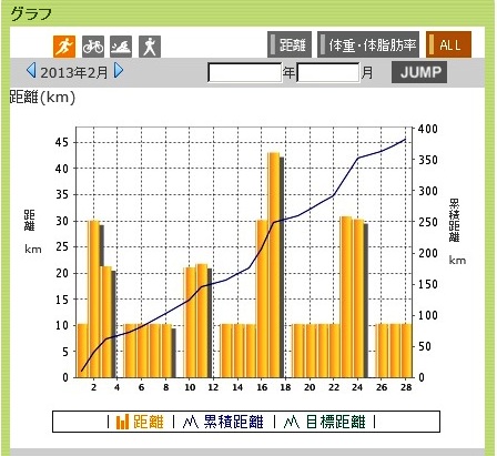 ランは自転車と違って幸いなことに雪でも走れますから(って、それは私だけ?)、距離だけは稼ぎきりました。