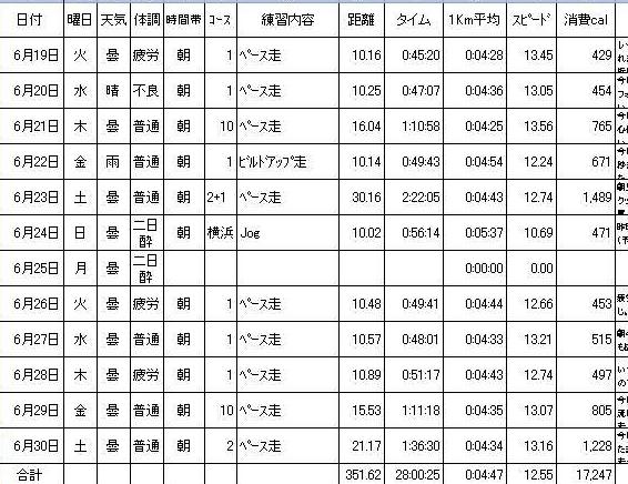 で、6月は何としても目標達成を目指しておりましたが、思ったように距離が伸びていきません。