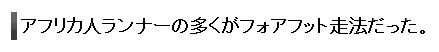 つまり、山道を走っていると自然とつま先着地になり、それを子供のころから毎日通学で平均すると7.5kmも走っていれば、大半がフォアフットになるよね、っていうことです。