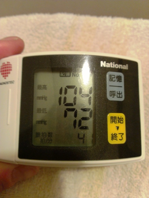 ちなみに先日の健康診断では最高血圧が100を切り、「低血圧」の診断・・・orz
