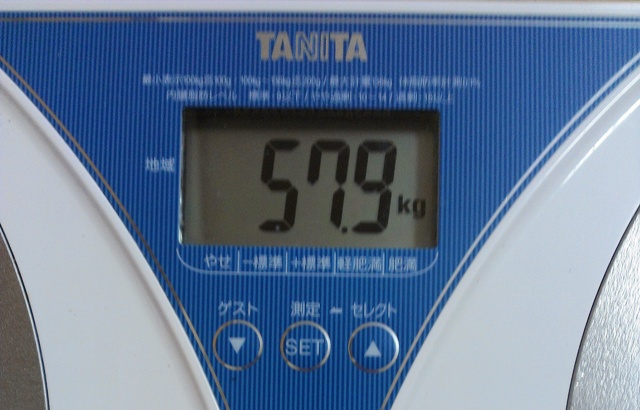 帰宅後も、少し座り込んで息が整うのを待ってからシャワーを浴び、毎朝日課のラン後の計量。