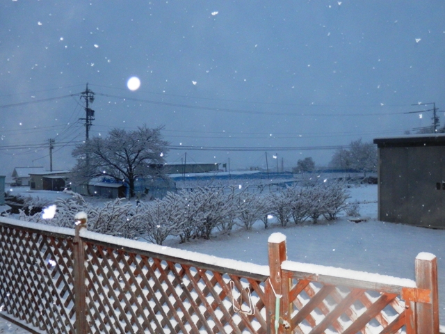 会社の昼休みに窓から外を見ると、まだ雪が降ってる・・・・・・(T_T)
