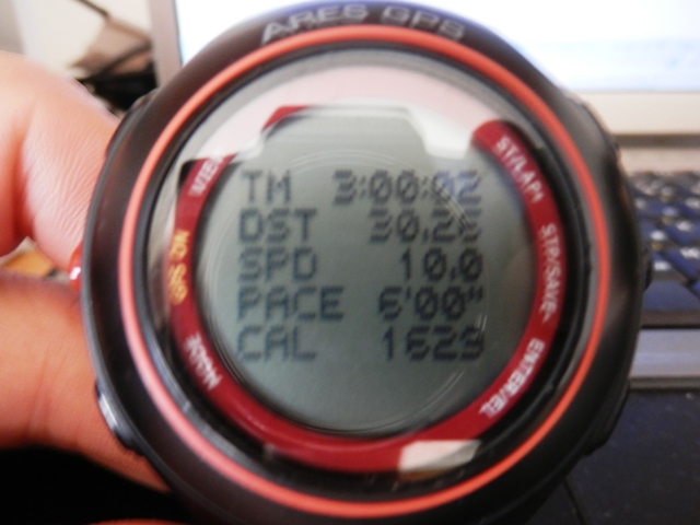 さんざん走った3時間。ペースもピッタリ キロ6分。走行距離合計は30.26Km