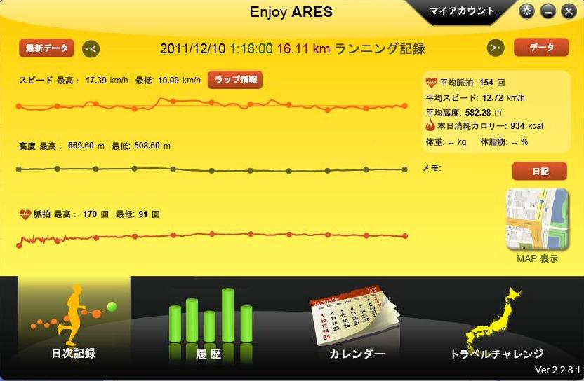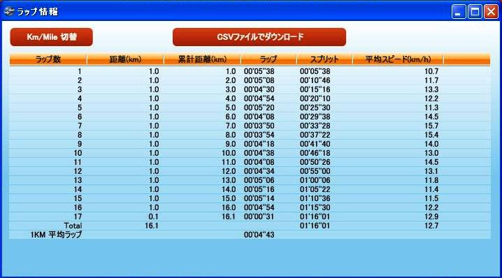 本日のラン 16.11Km 1時間16分01秒