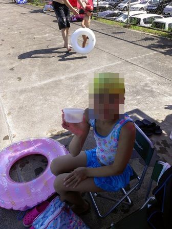 あまりの暑さに、娘と意見が一致しプールへやってきました。
