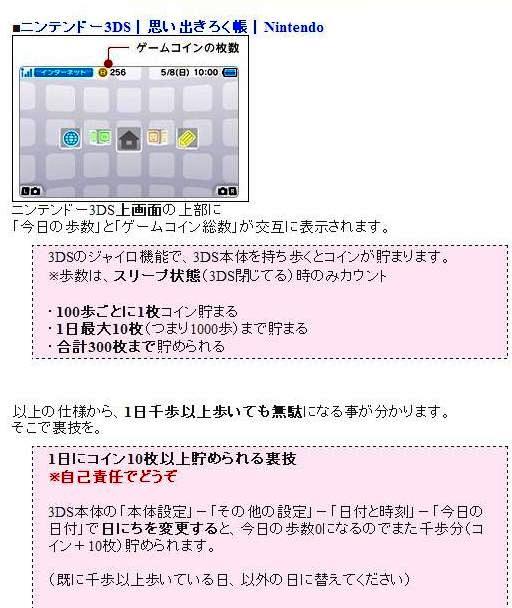 (娘) あのね、3DSを持って100歩歩くとゲームコインが1枚たまるの