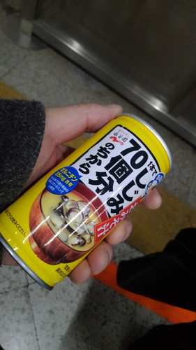 疲れをいやすべく、ホームで缶ジュースを購入しました。