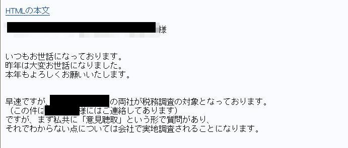 うちの会社の顧問税理士から私宛のメール・・・・・