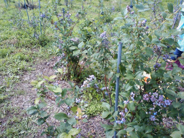 毎年恒例行事のブルーベリー狩りですので、娘も手慣れたもので、ウロウロしながらガンガンとブルーベリーを摘んでいきます。