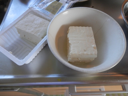 で、ひじきを戻している間に、豆腐(今回は1/2丁)を器に入れ・・・・・