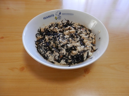 この料理は、栄養もさることながら、ただの豆腐だと柔らかいのでよく噛まずに飲み込んでしまうところ、ひじきが入ることでゆっくりと噛む事ができます。