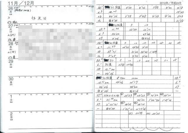 この手帳は、毎日のランニング記録を書き記し、後日トレーニングの参考にすることはもちろんの事、手書きゆえに走った当時の感想をリアルに思い返す事ができるので、これからも続けていきたい大事なツール。