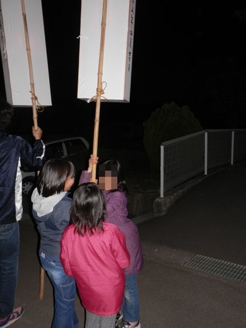 で、いざ行ってみると、灯篭持ちに子供一人できている子がいて、その子は娘の同級生。