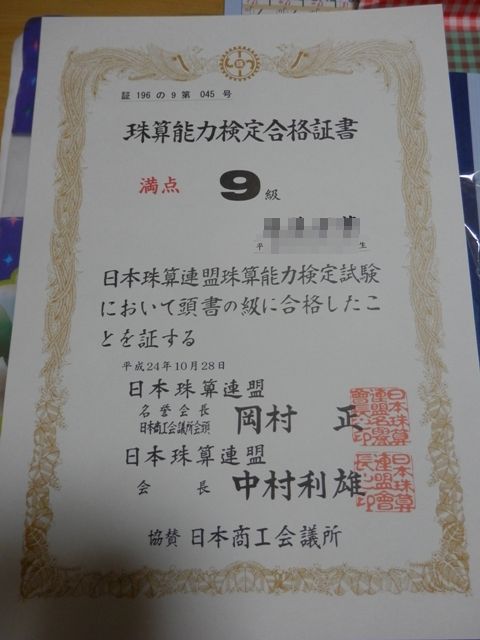 10級からスタートの検定ですから、まだまだ下から2番目の級ですが、そろばんを始めて月日も浅く、生まれて初めて挑んだ検定試験での合格です。