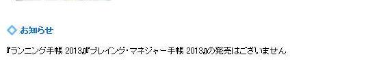 あわてて自宅に戻り、ネットで発売日を調べようと、発売元の「㈱ディスカバー・トゥエンティワン」のホームページで調べますが、2013年版の「ランニング手帳」が見当たらない。