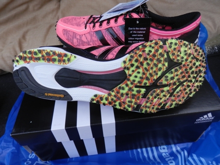 で、感じはというと、レース用としては、ちょっともったりした感じ。うまく言えないんですが、レーシーさが弱いのかな?って感じです。初代のJapanも持っていて、2週間前のハーフのレースでも履きましたが、その初代Japanと比べても、若干「もったりした感じ」がします。(スイマセンやっぱりうまく言えません(笑))