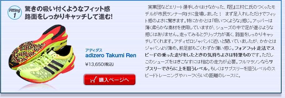 前回出場大会は、今年4月の「2012 長野マラソン」で、着用シューズは、adizero 匠(Takumi) 「戦(Sen)」。