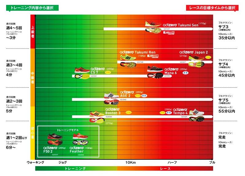 アディダスのシューズ・チャートを見ても、レベルは同水準に位置付けられている2足です。