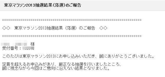 東京マラソン2013抽選結果(落選)のご報告