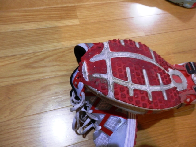 更にナイキ自慢のクッション性も完全に失われ、急坂などを駆け下りる衝撃はダイレクトに足裏に伝わる為、先週の日曜日に走った21Km走では、足裏の母子球のあたりにマメができてしまいました。