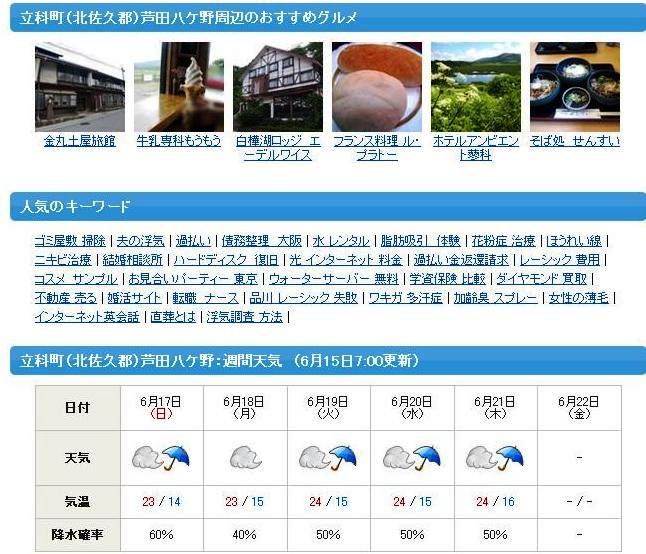 週間天気予報で、ピンポイント(立科町 芦田 八ヶ野)のお天気は