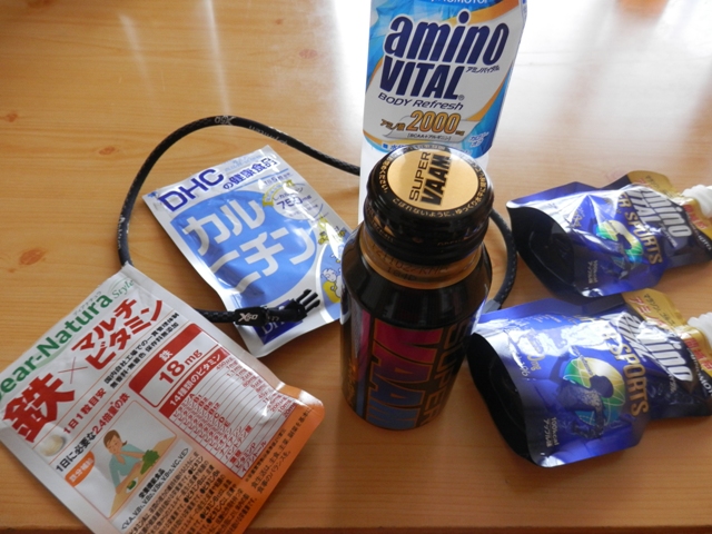 そして、レース前のドーピングとレース後の体のケアを考えたサプリ類。