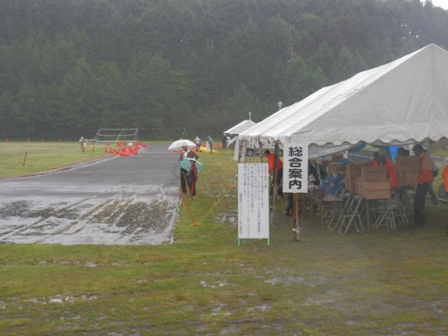 スタート会場の陸上競技場もずぶ濡れです・・・・Σ(゚∀゚ノ)ノキャー