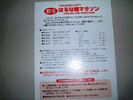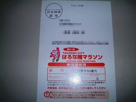 第21回TAKASAKI CITY はるな梅マラソン参加通知書!