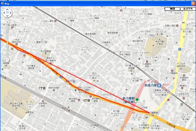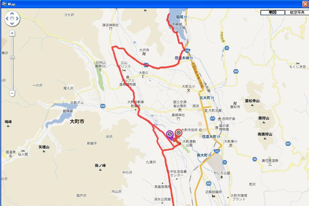 道路でないところを一直線で結んだ軌跡が、GPS LOSTの区間です。