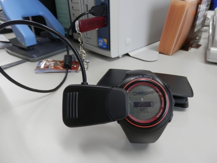 こんな感じで、USBで充電しますがフル充電でもGPSの駆動時間は8時間。しかも、バッテリー残量が10%や20%のようないつ止まるかわからない状況まで使えませんので、1回充電しても1週間はもちません。