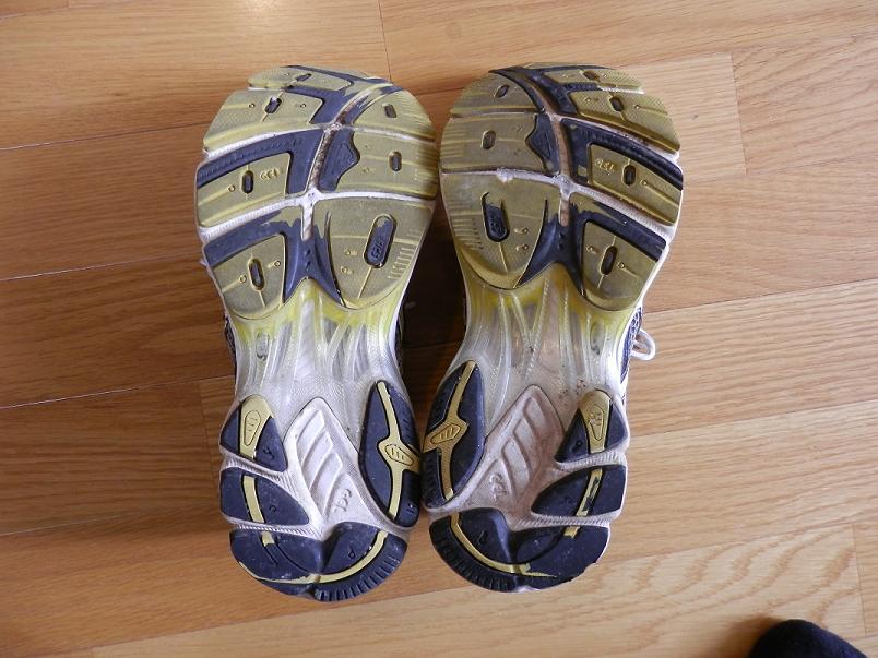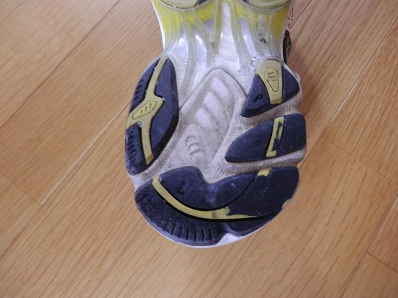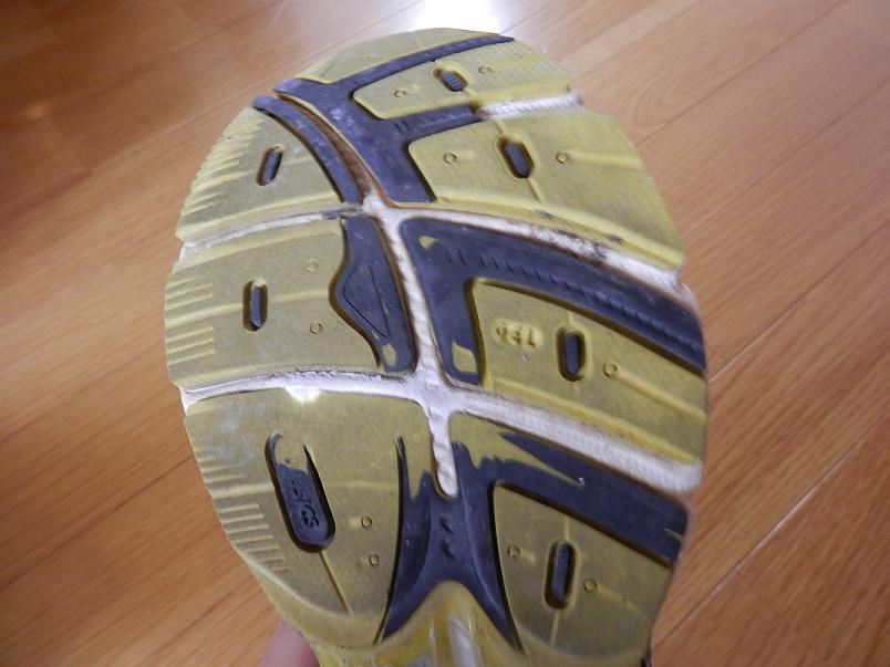 実際の使用では、アウトソールが擦り減って、ミッドソールの白い部分が見えてきたら交換というのが良く聞く話しです。まあ、800Kmも走ればだいたいソールはこの程度擦り減ってくるので交換して下さいということになりますし、仮に上手に走ってソールが無事だとしてもランニングシューズの命である「クッション性」は落ちてきているので、シューズの寿命が来たら交換しましょうという事のようです。